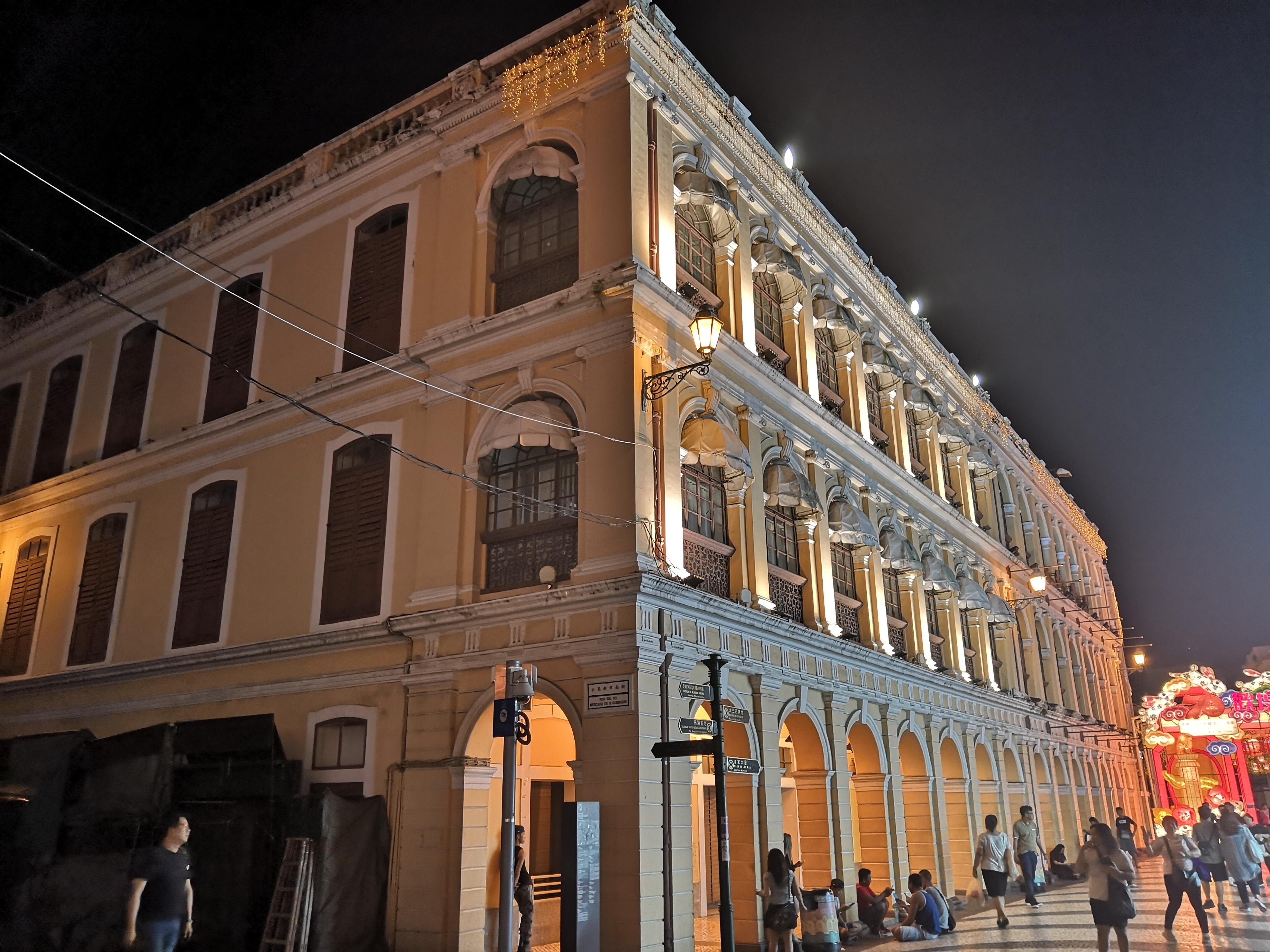 衔接上第二次去澳门是在夜晚,去澳门塔看了烟花后直接坐公交到澳门市政署,也就是民政总署大楼,位于澳门历史城区,南欧风格的建筑雅致古典,不过晚上不开门所以也无缘进去参观,不过发现了市政署旁的议事厅广场才是最值得游览的地方。