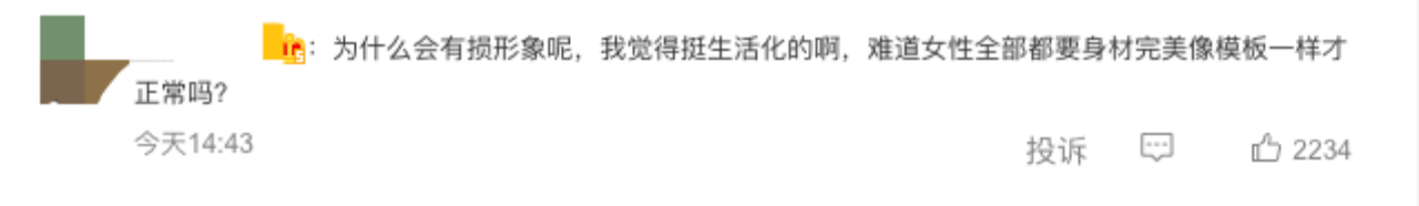 不过,还有更多网友表示不觉得侮辱了女性形象,“为什么会有损形象呢,我觉得挺生活化的啊,难道女性全部都要身材完美像模板一样才正常吗?”“肥的女人就有损形象?”“很可爱的雕塑啊!”